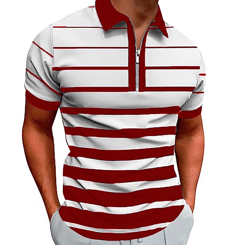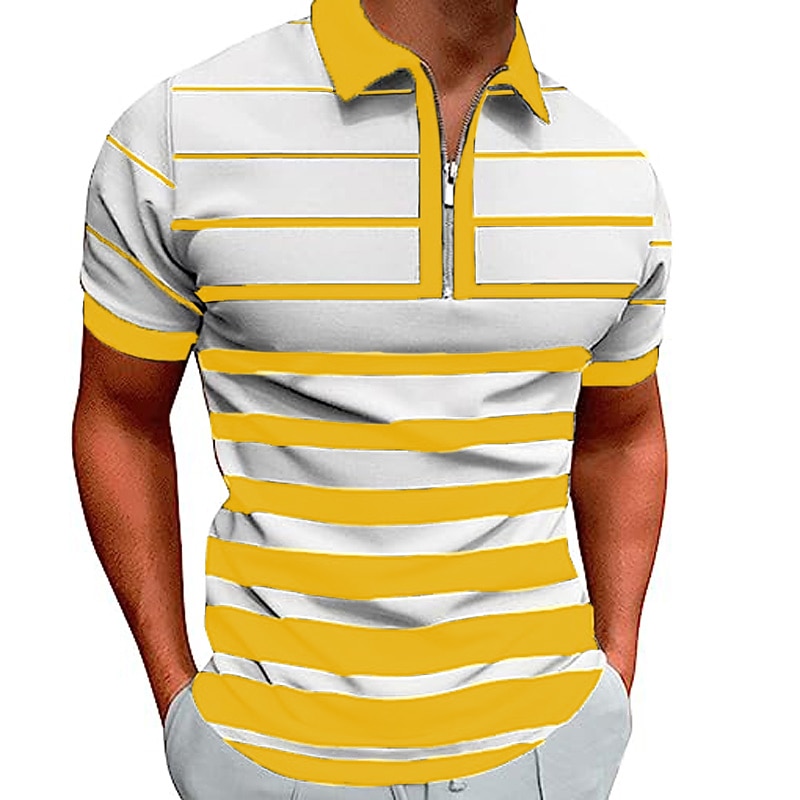 More information about Men's Zip Polo Polo Shirt Casual Daily Quarter Zip Short Sleeve Fashion Basic Stripe Horizontal Stripes Zipper Summer Regular Fit White Yellow Red Navy Blue Brown Zip Polo