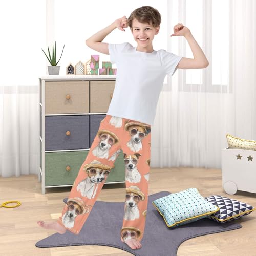 HOT ! Jack Russell Dog with Hat Boys Long Pants Soft Trousers Elastic Waist Kids Lounge Bottoms with Pockets S-XL