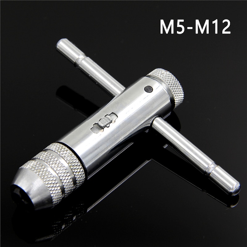 Silver T-Handle Ratchet Tap Holder Wrench  M5-M12 Machine Screw Thread Metric Plug T-shaped Tap 5