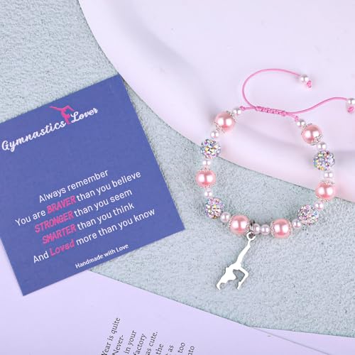 • Gymnasts Charm: Decorated with sparkling balls, pink beads, and exquisite gymnast charm, capturing the elegance and charm of gymnastics. Tell every gymnast that they shine like the bracelet itself.