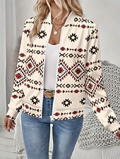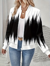 More information about Women's Jacket Comfortable Print Outdoor Casual Boho Vintage Geometric Vacation Home Casual Daily Wear Short Baseball Collar Regular Fit Long Sleeve Outerwear Black And White Light Yellow Leopard