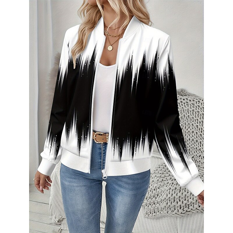 HOT ! Women's Jacket Comfortable Print Outdoor Casual Boho Vintage Geometric Vacation Home Casual Daily Wear Short Baseball Collar Regular Fit Long Sleeve Outerwear Black And White Light Yellow Leopard