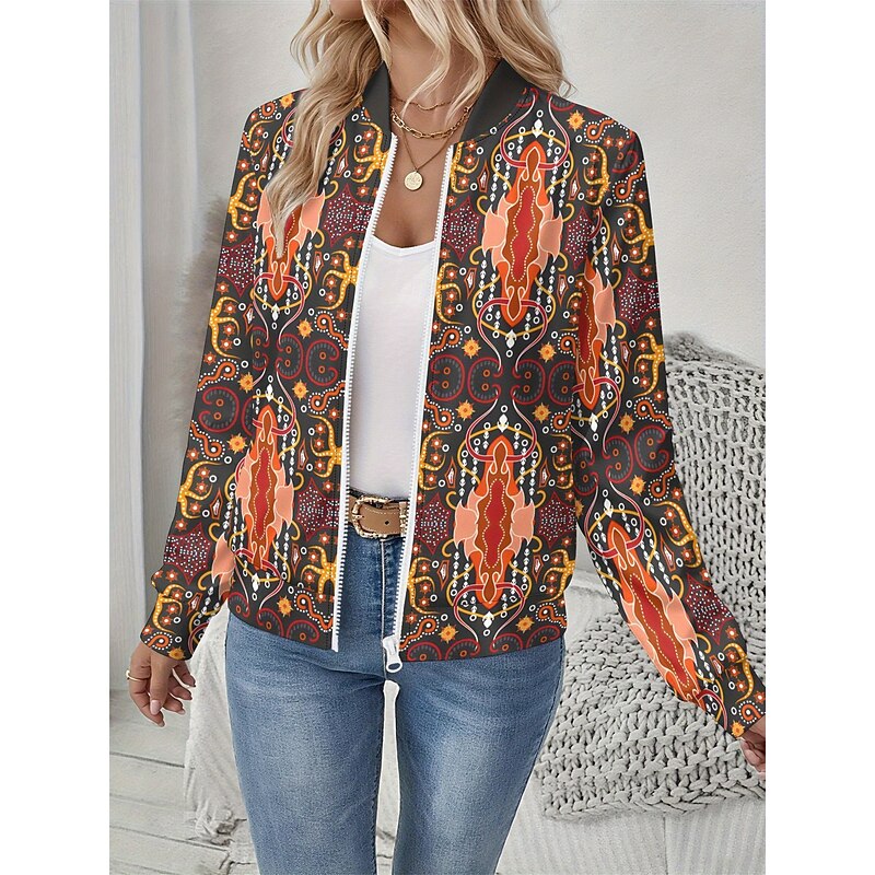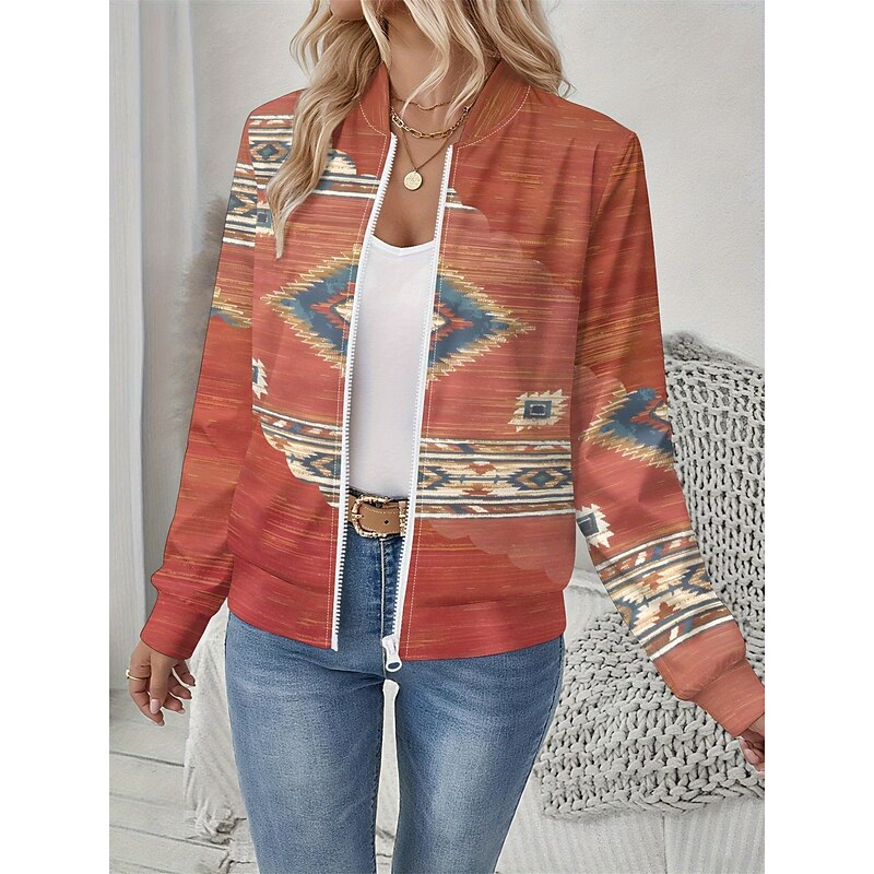 Women's Jacket Comfortable Print Outdoor Casual Boho Vintage Geometric Vacation Home Casual Daily Wear Short Baseball Collar Regular Fit Long Sleeve Outerwear Black And White Light Yellow Leopard 2