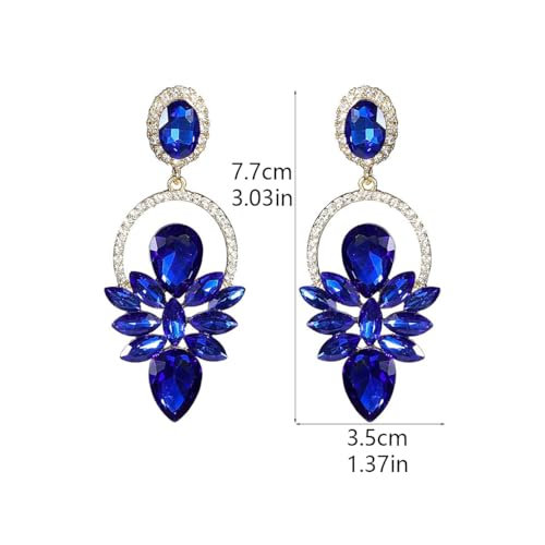 Chargances Vintage Royal Blue Rhinestone Statement Earrings Chic Crystal Teardrop Dangle Earrings for Wedding Women Brides 1