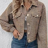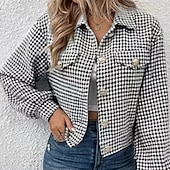 More information about Women's Casual Jacket Comfortable Pocket Buttons Fashion Houndstooth Outdoor Vacation Holiday Going out Single Breasted Regular Turndown Regular Fit Long Sleeve Outerwear Black Red Sky Blue Fall