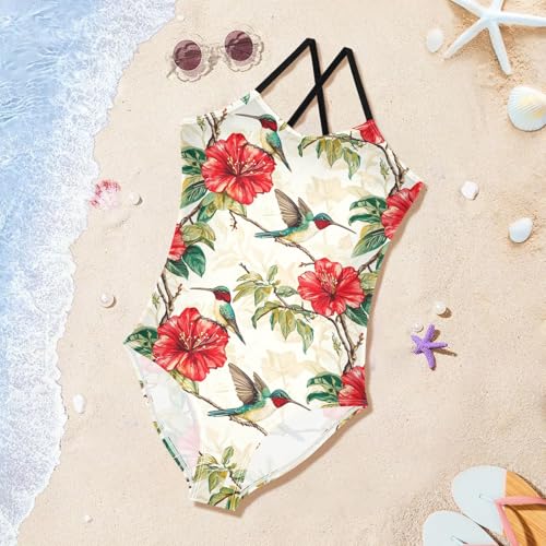 ZZKKO Hummingbird Red Flower Girls Swimsuit One Piece Bathing Suit for Baby Girls' Swimwear 3-10T 3