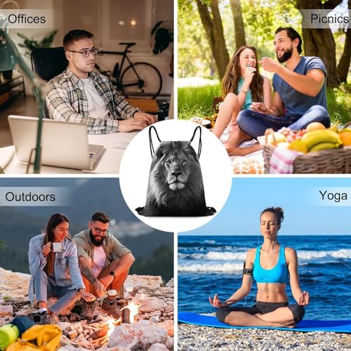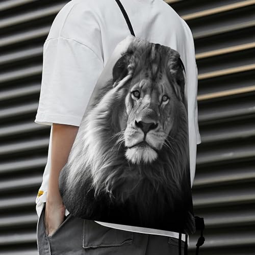 Backpack Drawstring Backpack String Bag African Lion Black And White Printed Gym Sack 5