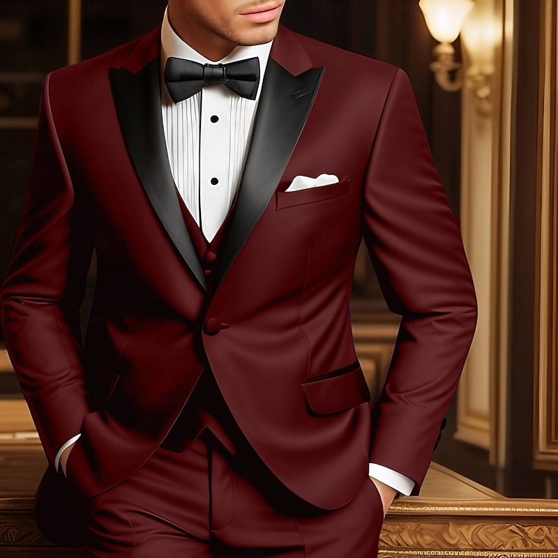 $143.99 - Men's Wedding Party Evening Wear Tuxedos Party / Evening Black Burgundy Solid Colored Tailored Fit 3 Piece Single Breasted One-button 2025. Shop for cheap Wedding Suits online? Buy at lightinthebox.com on sale today!