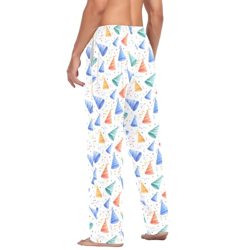 Mens Cotton Pajama Pants Sleep Lounge Pj Bottoms Sleepwear with Pockets Drawstring S Party Hat Ribbons 4