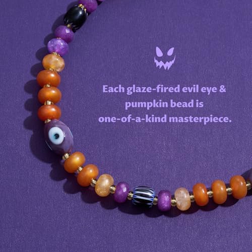 • Spooktacular Style: Elevate your halloween look with the beaded necklace! Handmade gemstone choker with evil eye and dark pumpkin design. Each coloured glaze evil eye and pumpkin bead is hand-fired and is a unique beauty