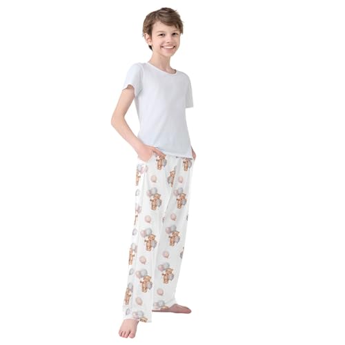 ZZKKO Bear Balloons Watercolor Boys Pants for Kids Jogger Pants with Pockets S-XL