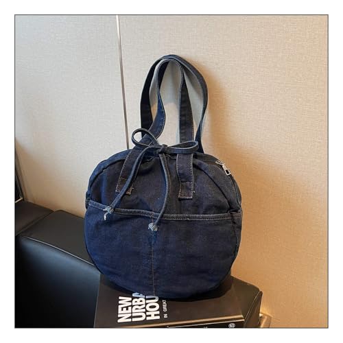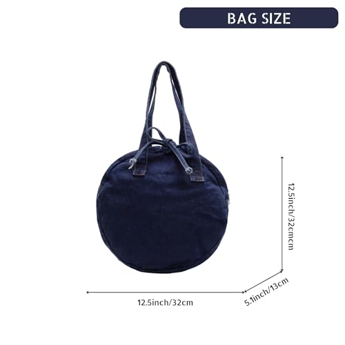 HOT ! Stylish Round Denim Shoulder Bag with Bow, Lightweight Tote Bag for Women, Casual Retro Aesthetic Handbag for Work Travel