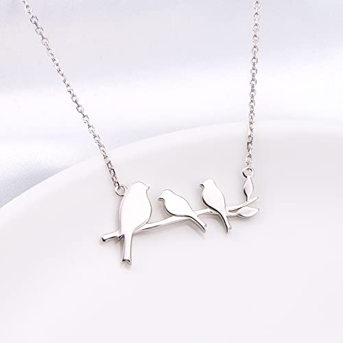 DAOCHONG 925 Sterling Silver Cute Animal Family Bird Necklace Birds on Branch Necklace for Mom from Daughter Son 3