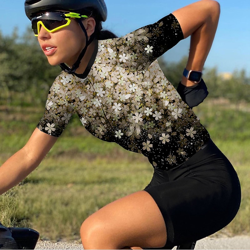 Women's Cycling Jersey Floral Botanical Short Sleeve Bike Top with 3 Rear Pockets Mountain Bike MTB Road Bike Cycling Quick Dry Reflective Strips Back Pocket Moisture Wicking Sports Yellow Pink Blue 19