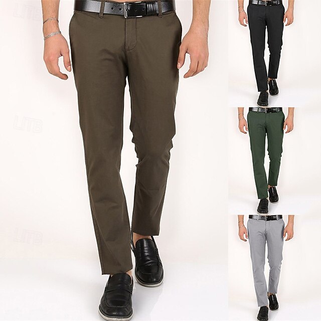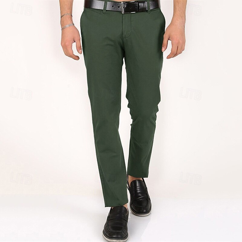 HOT ! Men's Dress Pants Trousers Chinos Buttons Pocket Plain Comfort Formal Party Work Fashion Classic Style Black Dark Green Micro-elastic