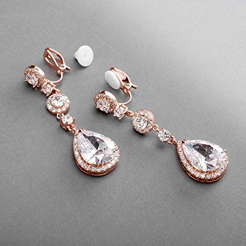 HOT ! Mariell Pierced or Clip-On Silver, Gold or Rose Gold CZ Dangle Drop Earrings for Women, Brides, Wedding