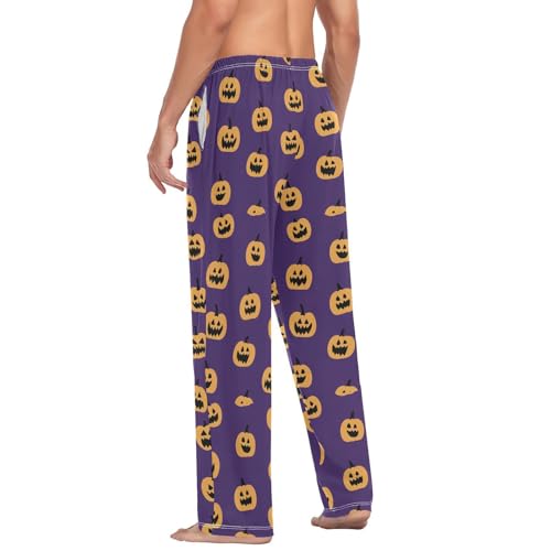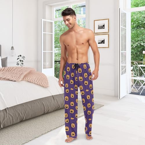 HOT ! Men's Halloween Pumpkins Pajama Pants with Pockets - Straight Fit Cotton Sleep Bottoms for Lounge & Nightwear#739
