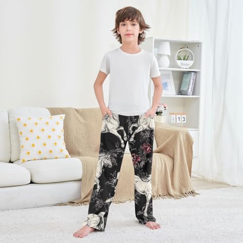 HOT ! ZZXXB Horse Rose Flowers Boys Long Pants Soft Trousers Elastic Waist Kids Lounge Bottoms with Pockets S-XL