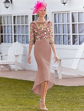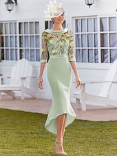 More information about Floral Formal Lace Embroidered Mermaid Dress Mother of the Bride Dress Elegant Vintage Jewel Neck Asymmetrical Tea Length Stretch Fabric Half Sleeve Race Day Dress