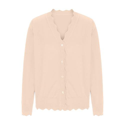 HOT ! Oplxuo Women's Long Sleeve V-Neck Button Down Cardigan Knit Shrugs Sweater Lightweight Scalloped Edged Bolero Shrugs