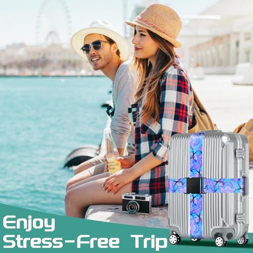 Slohif Luggage Straps for Suitcases Travel Belt Accessories Luggage Connector Identifiers 2 Pack Over Handle with Buckle Unique Nylon Adjustable Strap for Sleeping Bag Car Seat Butterfly 4
