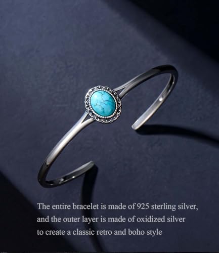 Genuine Oval Turquoise Bracelet Cuff for Women 925 Sterling Silver Native American Bangle Bracelets Boho Style Jewelry for Mom Wife 4