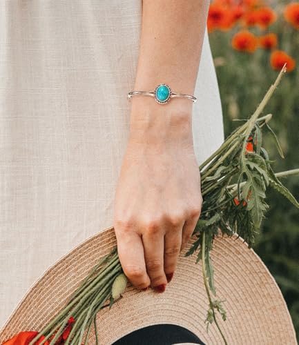 Genuine Oval Turquoise Bracelet Cuff for Women 925 Sterling Silver Native American Bangle Bracelets Boho Style Jewelry for Mom Wife 6