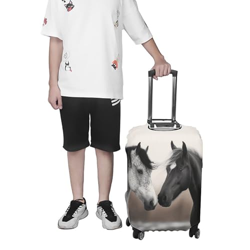 Black And White Horses Luggage Cover, Washable Elastic Suitcase Cover Protector Fit 18-32 Inch Luggage 7