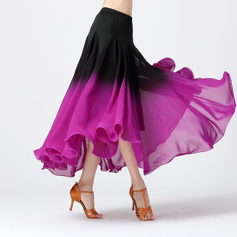 HOT ! Ballroom Dance Activewear Skirts Ruching Splicing Women's Training Performance High Chiffon Polyester