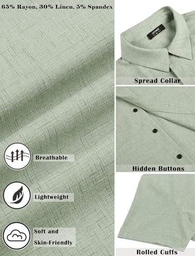• PREMIUM LINEN FABRIC ---Linen button down shirt men is made of premium linen blend fabric, which is lightweight, breathable, soft and comfortable, and anti-shrinkage. Keeping you cool and comfortable all day