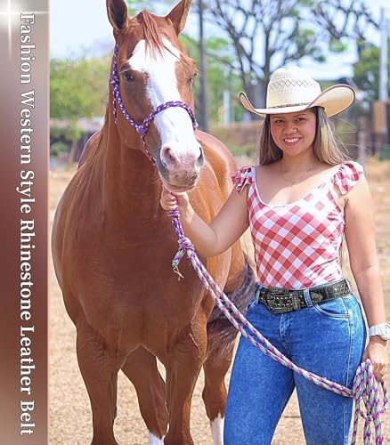 More information about Men Women Rhinestone Belt Western Leather Belt Cowgirl Cowboy Bling Diamond Studded Leather Belt for Jeans Pants