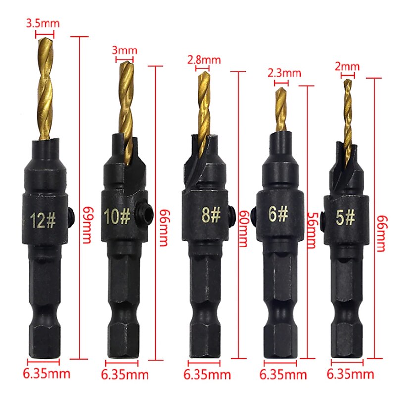 $11.99 - 5pcs HSS Drill Bits 1/4 Hex Shank Countersunk Tapper Tool Woodworking Wood Pilot Hole Size #6 #8 #10 #12 #14 With 1 Wrench 2025. Shop for cheap Drill Bit Set online? Buy at lightinthebox.com on sale today!