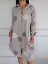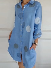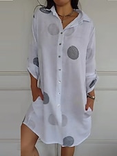 More information about Women's Mini Dress Shirt Dress Cotton Linen Dress Classic Modern Vacation Daily Holiday Regular Fit Dot Long Sleeve Shirt Collar White Royal Blue Gray Summer
