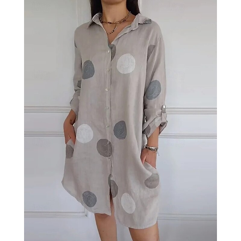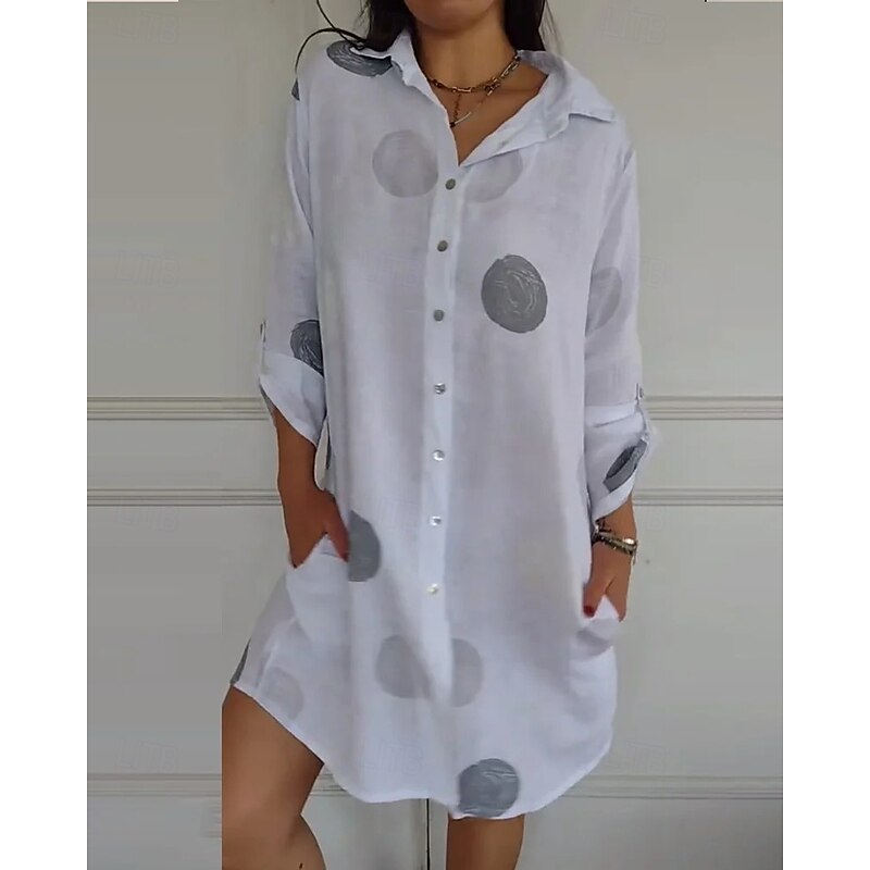 HOT ! Women's Mini Dress Shirt Dress Cotton Linen Dress Classic Modern Vacation Daily Holiday Regular Fit Dot Long Sleeve Shirt Collar White Royal Blue Gray Summer