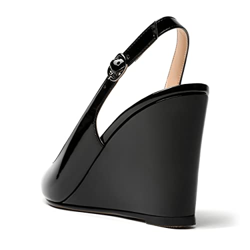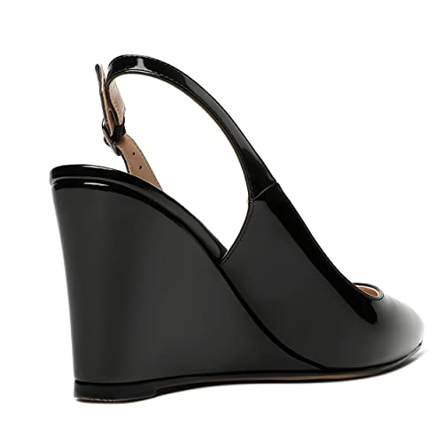HOT ! WAYDERNS Women's Pointed Toe Adjustable Strap Ankle Strap Dating Fashion Slingback Buckle Solid Patent Wedge High Heel Pumps Shoes 3.3 Inch