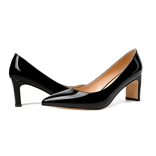 NUMALEO Womens Party Pointed Toe Fashion Patent Slip On Chunky Mid Heel Pumps Shoes 2.5 Inch 6