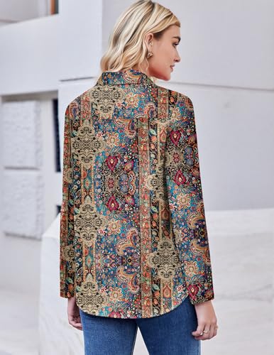 Zeagoo Button Down Shirt for Women Long Sleeve Blouses Floral Printed Tops Business Casual Work Outfits S-XXL 3