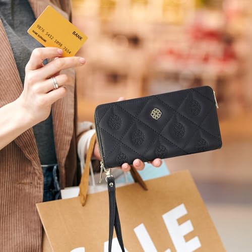 sizzling ! Women's Wallet, Double Zip Leather Phone Wallets, Large Capacity Card Holder Wristlet Purse with Zipper Pocket (Black)