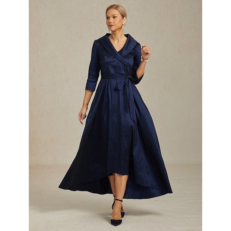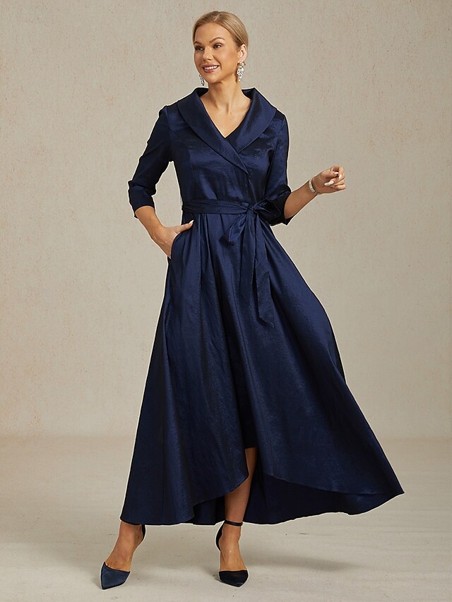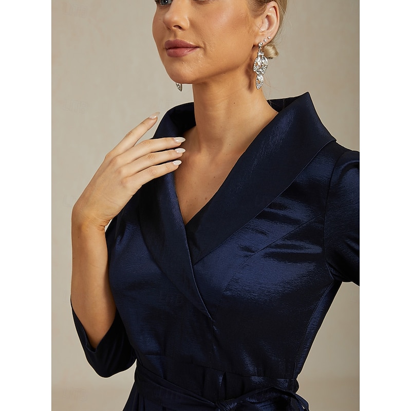 More information about Women's Maxi long Dress Party Dress Elegant Vintage Regular Fit Solid Color 3/4 Length Sleeve V Neck Navy Blue Fall Winter