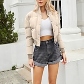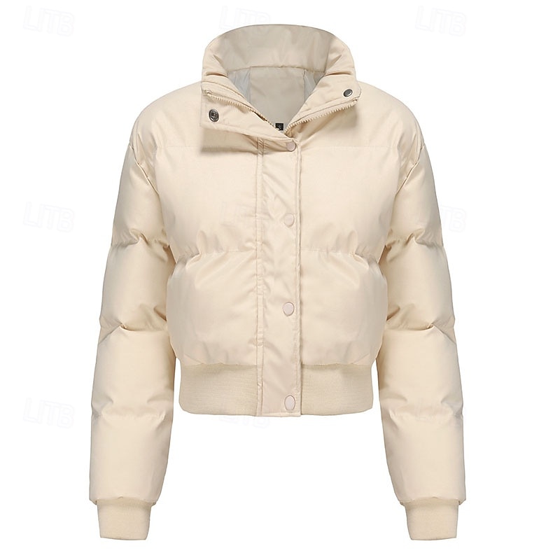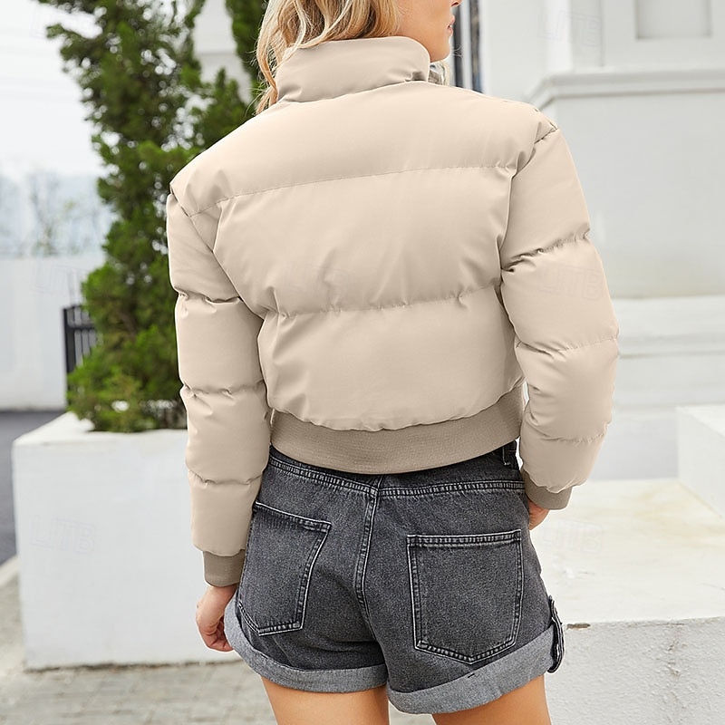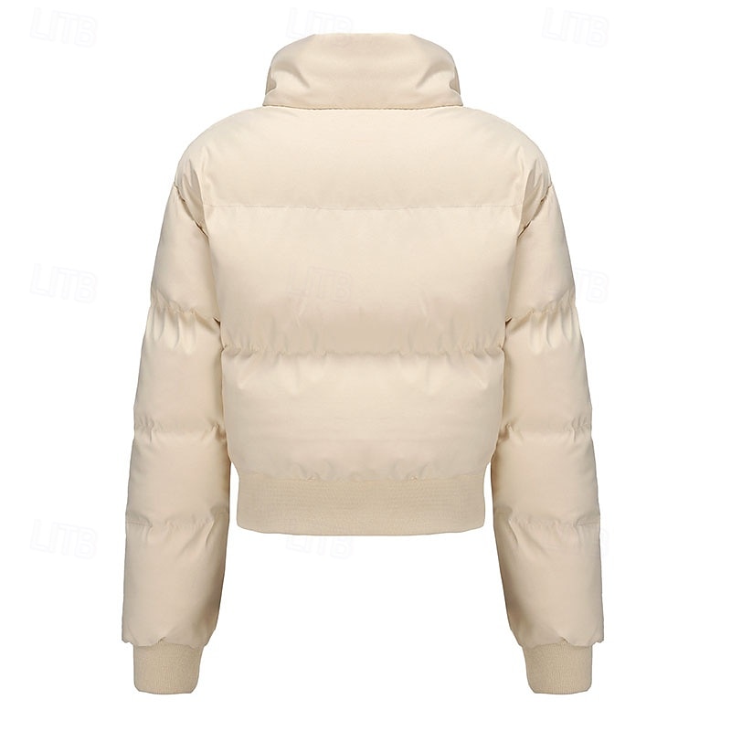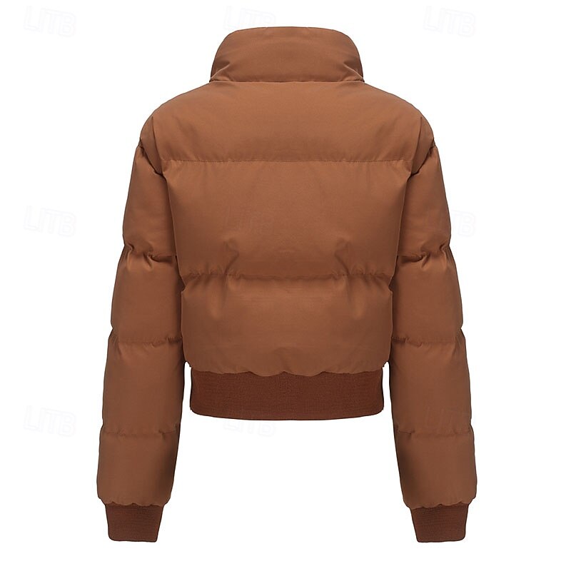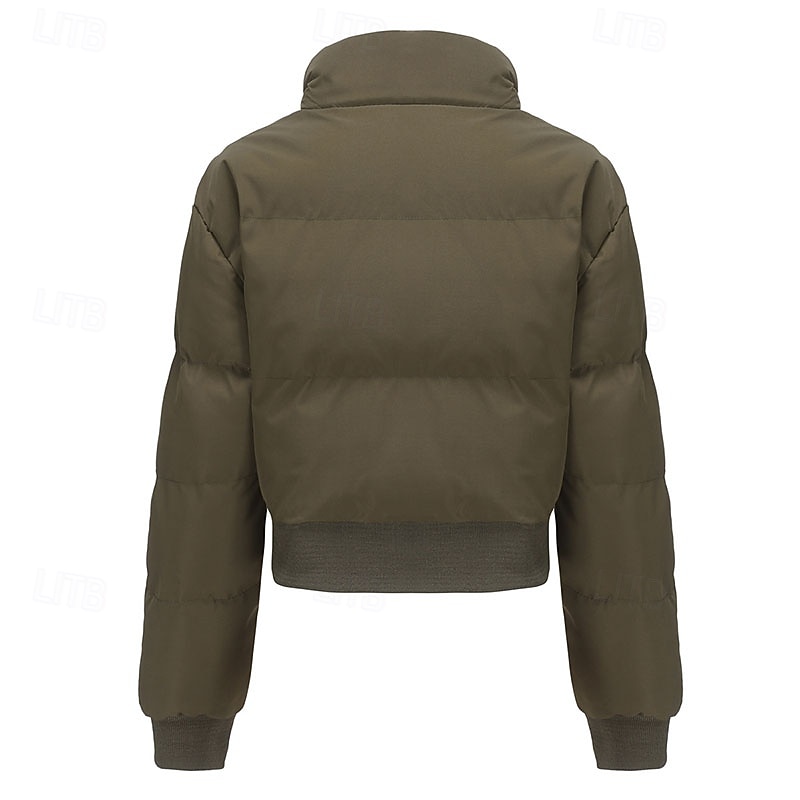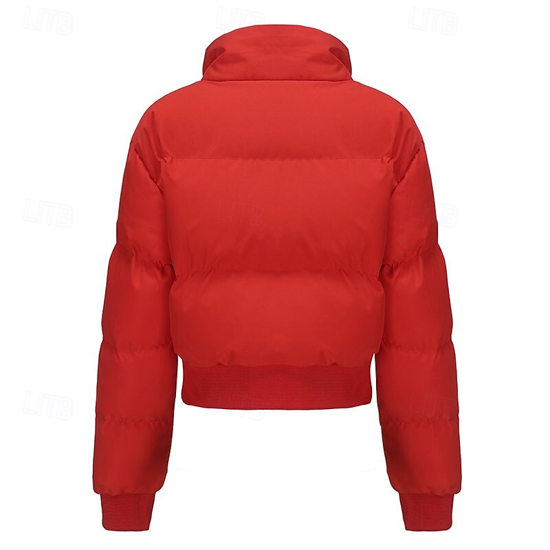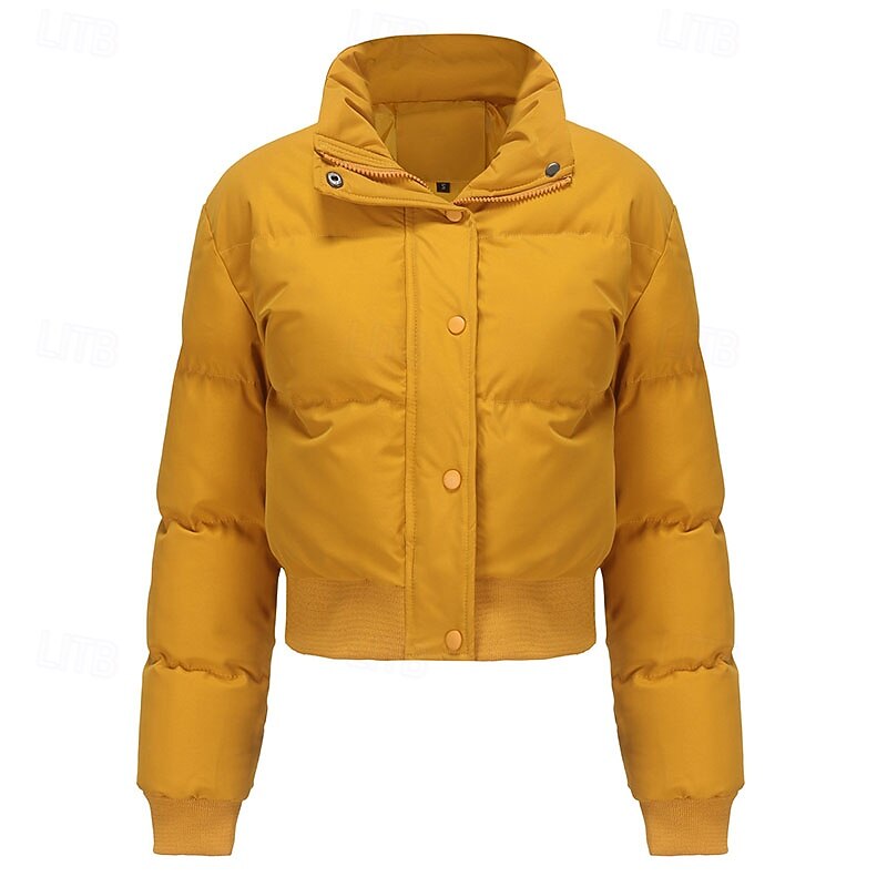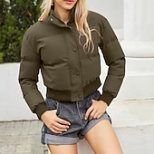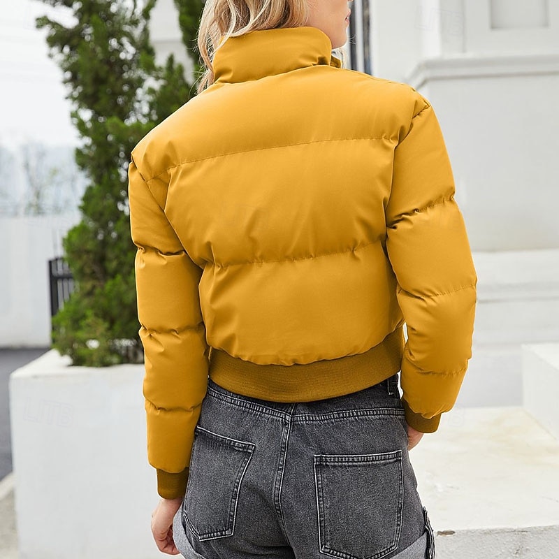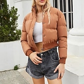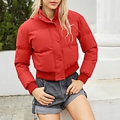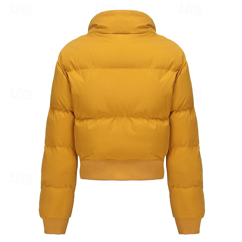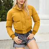 More information about Women's Down Jacket Warm Comfortable Zipper Casual Solid Color Vacation Street Daily Wear Going out Short Stand Collar Regular Fit Long Sleeve Outerwear Black Yellow Red Fall Winter