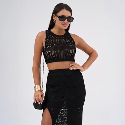 • STYLISH DESIGN: Two-piece knit set featuring a sleeveless crop top and maxi skirt with elegant side slit detail for a sophisticated silhouette