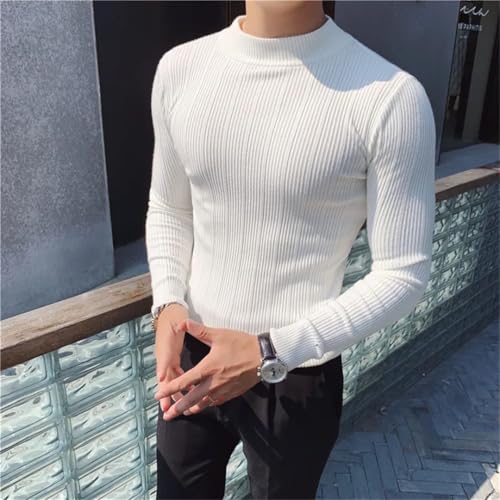 HOT ! Men's Pullover Sweaters Korean Striped Sweater Half High Collar Stretch Tight Slim Fit Knit Sweater