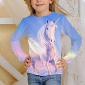 More information about Kids Girls' Unicorn 3D Print T shirt Tee Long Sleeve Animal Print Blue Children Tops Fall Active School Daily Wear Regular Fit 4-12 Years