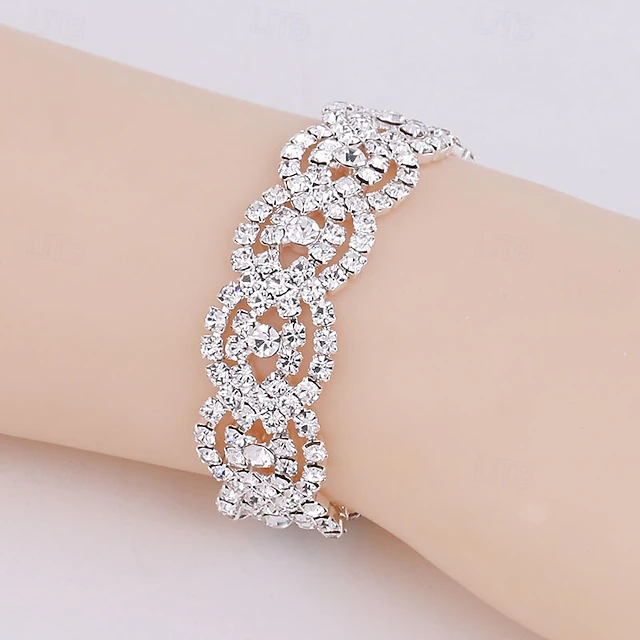 Classic Blessed Stylish Rhinestone Bracelet Jewelry Silver For Wedding Gift Holiday Engagement Festival 1