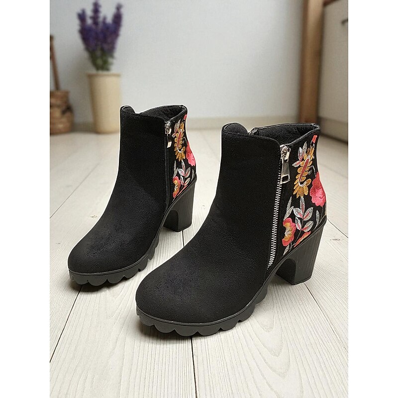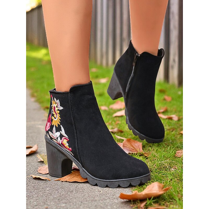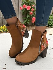 More information about Women's Brown Floral Embroidered Ankle Boots with Zipper Closure, Chic and Comfortable, Perfect for Casual Outings, Fall Gatherings and Outdoor Activities