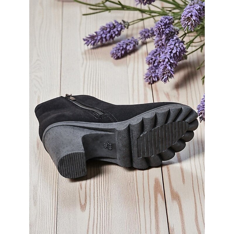 Highlights - Luxurious feel with faux suede upper materials - Stylish and comfortable chunky heel - Classic round toe shape - Durable rubber outsole for long-lasting wear.