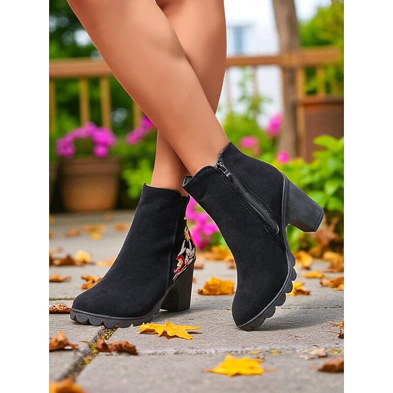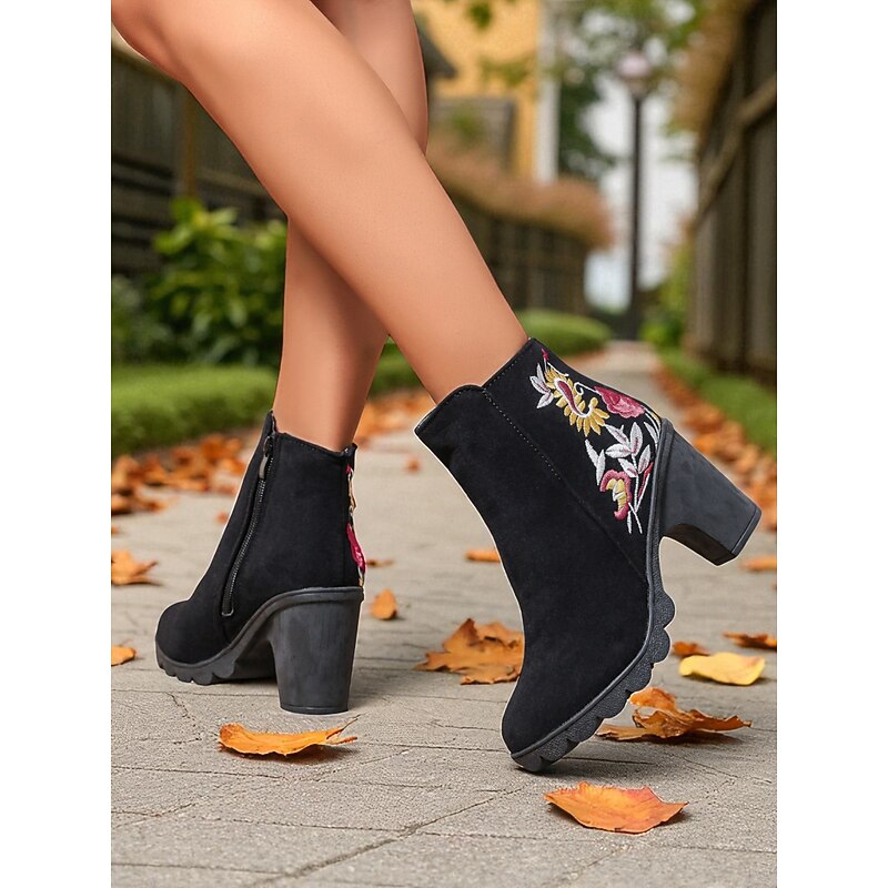 Women's Brown Floral Embroidered Ankle Boots with Zipper Closure, Chic and Comfortable, Perfect for Casual Outings, Fall Gatherings and Outdoor Activities 12
