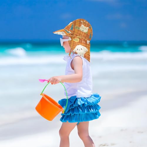 Toddler Sun Hats Boys Water Hats Girl Sun Protection Adjustable Traveling Camping Hat Cartoon Orange Plaid Dogs Cute 4