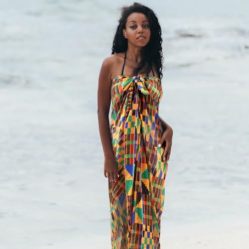 • Versatile Sarong Swimsuit Cover-ups: our women's kente sarong is not just a beach towel. It can serve multiple purposes such as a swimsuit cover-up, bikini beach skirt, summer sun shawl, lightweight headscarf, chest cover-up, or even as a tie-up wrap skirt; It's the ultimate addition to your beach getaway wardrobe
