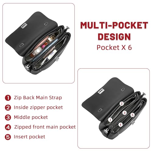 • [Structure] - Inside our leather crossbody bag is with 3 main compartments, middle with one zipper pocket, 1 inner zipper pocket, 2 open slot. Outside with 1 back zipper pocket, meeting your needs for daily activities. The roomy interior can hold your cellphone, wallet, power bank, folding umbrella, perfume, lipstick, cosmetic, sunglasses, keys, important bills, etc.